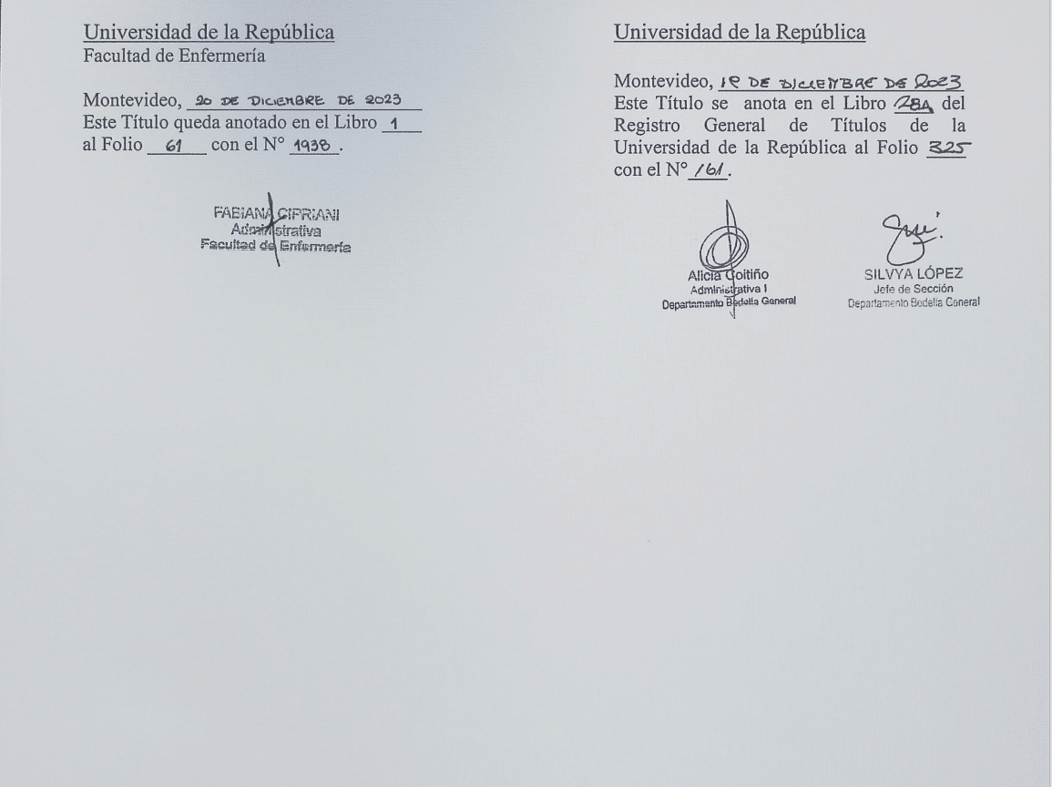 Hola tengo 27 años soy auxiliar de enfermeria recibida en la facultad de enfermeria UDELAR cuento con titulo de la mis ay habilitacion, sigo con mis estudios para comvertirme en licenciada en enfermeria estoy en 4 año de la carrera ya me falta poquito por suerte em encanta esta profesion me encanta poder apoyar y cuidar en el proceso de salud-enfermerdad de mis pacientes desde ya muchas gracias.